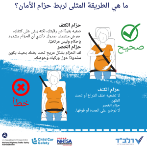 من المهم جداً ربط الحزام بشكل صحيح حتى أثناء الحمل، وذلك لحماية المرأة والجنين الذي تحمله. حتى عندما تكون المعدة “بارزة” بالفعل – لا يزال يتعين على السائقة ارتداء حزام الأمان في كل مرة تقود فيها السيارة، ولا تُعفى من ارتداء حزام الأمان.