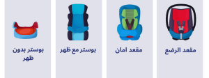 يشترط القانون على أنه يجب على كل راكب في السيارة أن يكون مربوطاً بمقعد أمان أو مقعد رفع (بوستر) أو حزام أمان بحسب أبعاد جسمه.